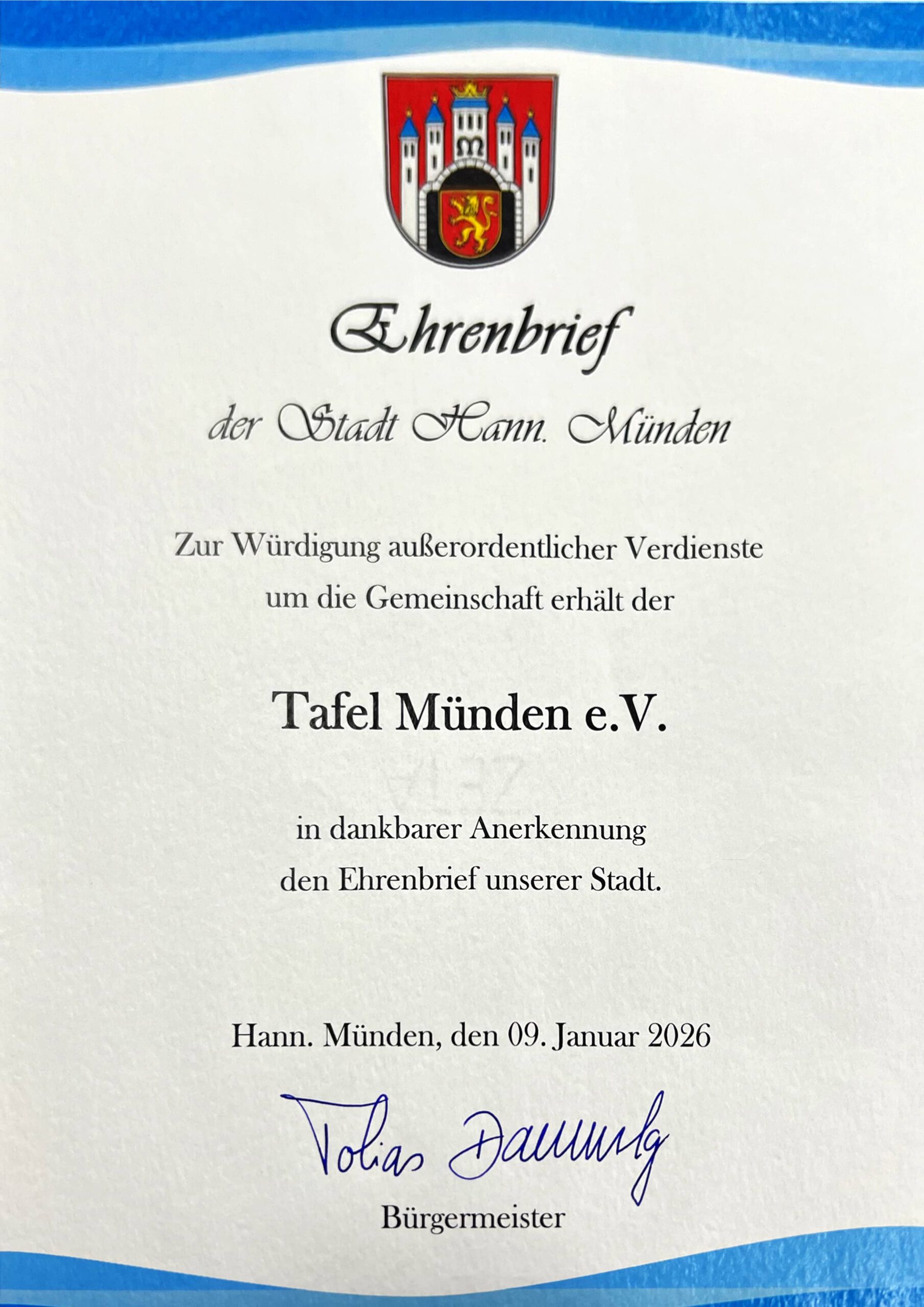 Das, was wir dieses Jahr und auch in den Jahren zuvor erfahren haben, lässt uns zuversichtlich in das neue Jahr blicken, in dem wir uns in Kooperation mit der Stadt Hann. Münden und der Diakonie weiterhin den Menschen zuwenden werden, die unser aller Hilfe bedürfen.